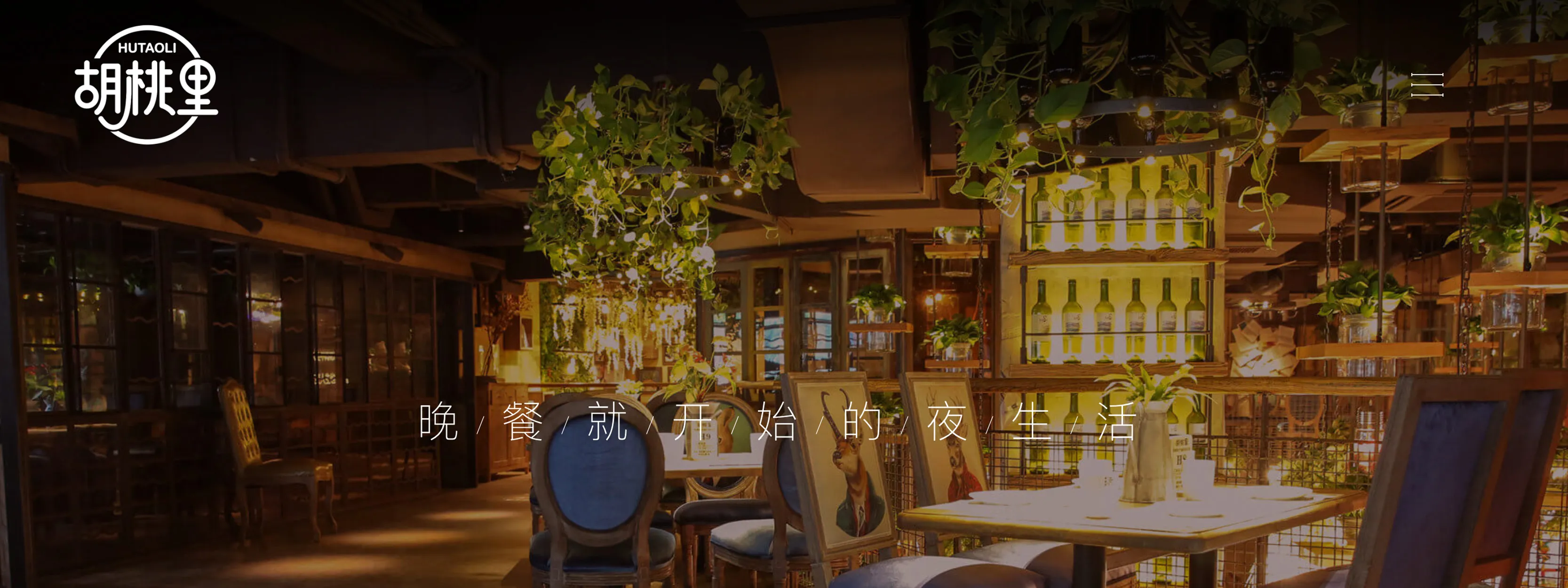 胡桃里音乐酒馆(Hutaoli Music Restaurant & Bar)始建于2014年,隶属中国最大的综合音乐实体集团——合纵文化集团;胡桃里倡导“晚餐就开始的夜生活”的生活理念,作为川菜、红酒、音乐现场的“文艺混血儿”,将美食,美酒,音乐,艺术等文化相互交融,以中国最好的“陪伴式音乐现场”为核心,成为覆盖各类客户群体最广的娱乐品牌;2021,胡桃里从形象、演出、产品、服务四个维度全新升级为2.0模式。