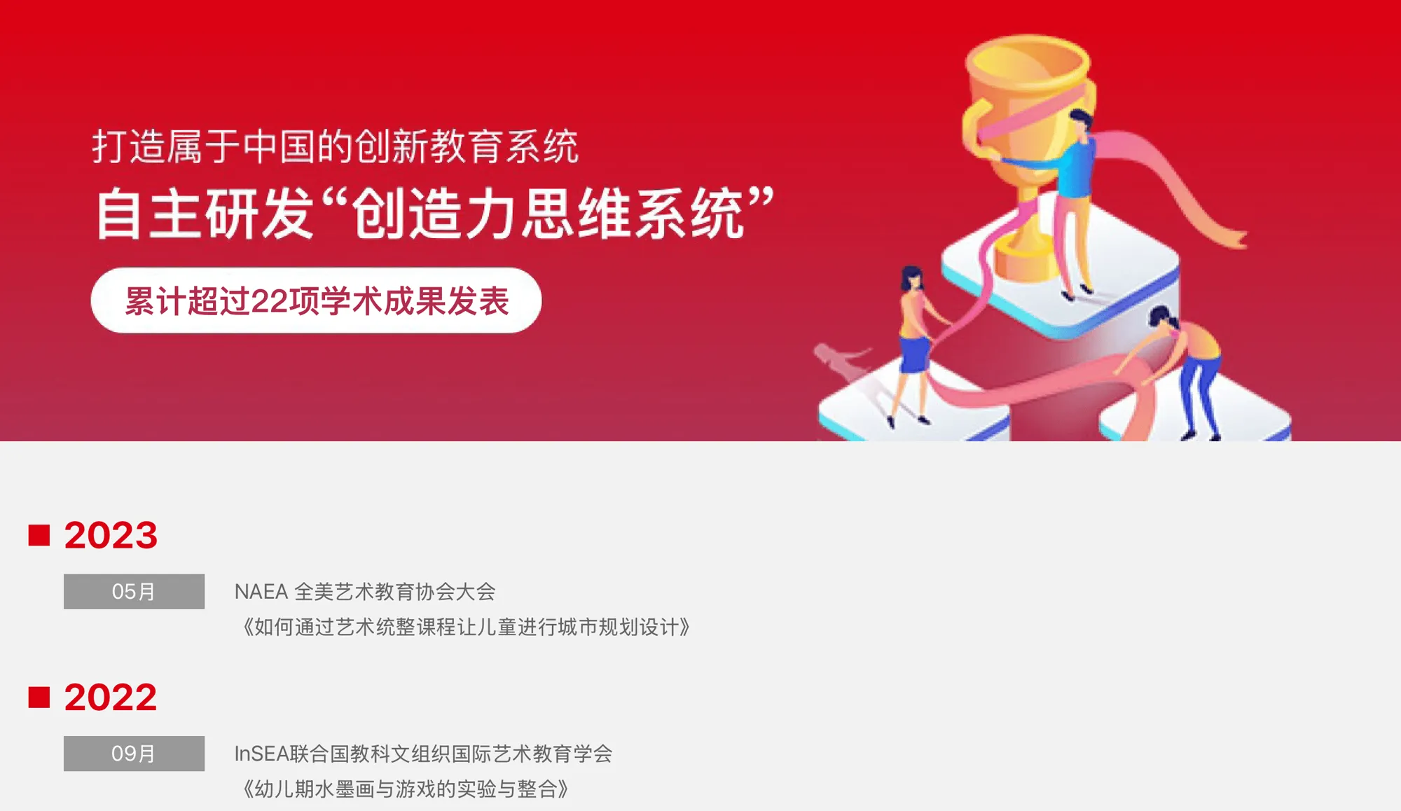 蕃茄田艺术以创造力思维系统为核心,打造了11年5学阶的的艺术统整课程体系,从美育思维、艺术思维、设计思维三个维度进阶,充分满足不同认知发展阶段孩子的学习需求。通过五大领域的学习,三大探索步骤的引导以及多元媒材的融合,培养孩子未来所需的“转译能力、多向思维、多元智能、艺术视野、成长转变、创新决策”六大能力,全面提升儿童综合艺术素养水平。蕃茄田艺术强调,让孩子在艺术的氛围里发现自己,通过创造力思维系统为其赋能,“从想法到实践、从掌握到调度、从自我到超越”,掌握“面对未知并超越未知”的能力。