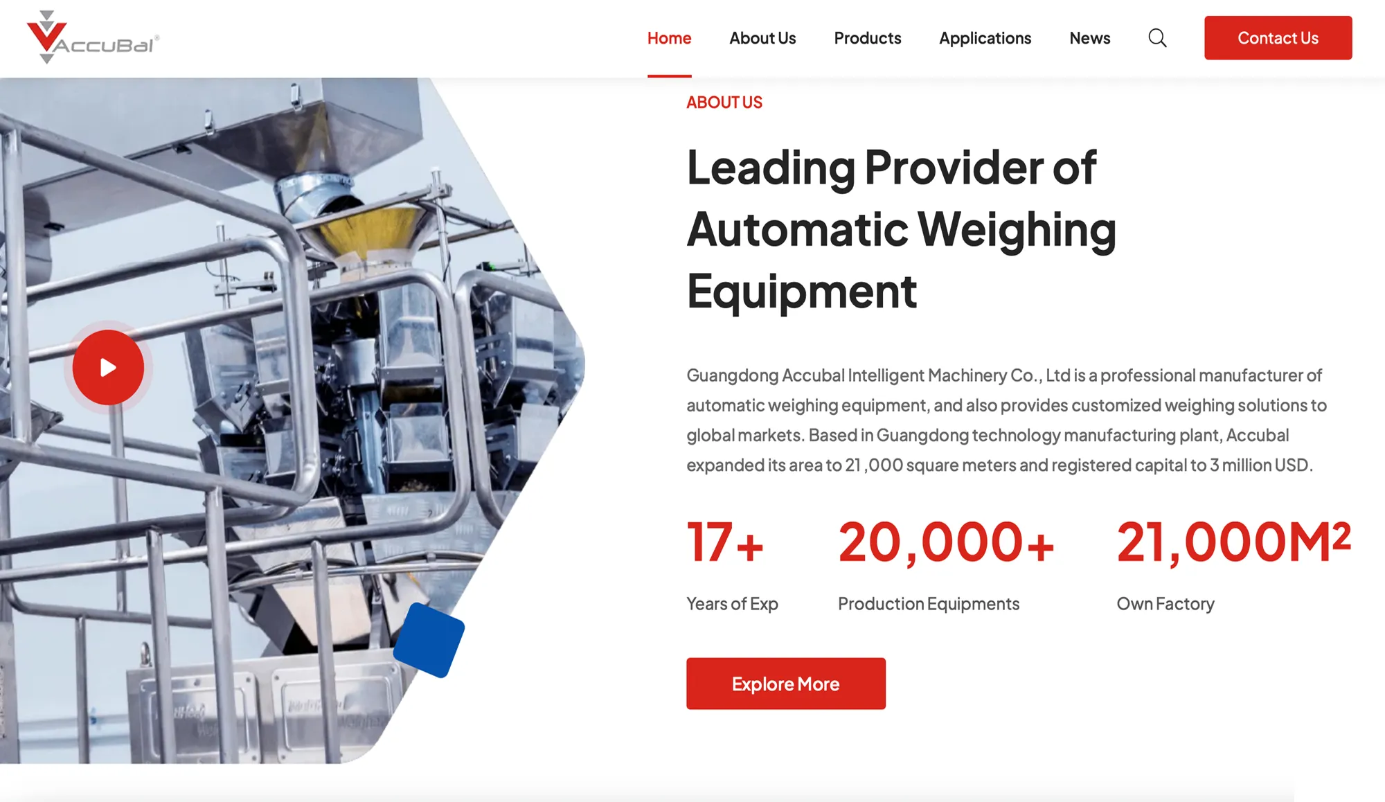 Since our establishment in 2007, Accubal has been an important manufacturer of diverse certified multihead weighers with 21,000 ㎡construction area and over 200 employees. In recent years, Accubal extends its scope to packing, sorting and detecting machines with an aim to provide one-stop solution for customers. Accubal enjoys high reputation worldwide with its high quality, reliable service and attractive price.