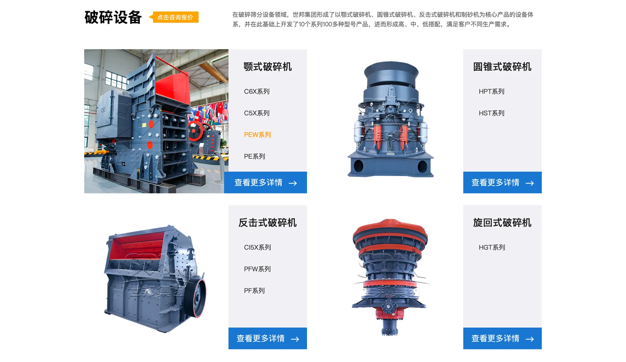 世邦工业科技集团股份有限公司是集研发、生产、销售、服务于一体的高新技术企业,曾获得国家工信部专精特新“小巨人”企业、上海市专精特新企业、上海市服务型制造示范企业、“浦东总部经济十大经典样本”等荣誉称号。业务领域涵盖砂石骨料、矿物破碎、固废处理、绿色矿山、工业粉磨等,为以上领域提供核心破磨筛分装备及整体解决方案。为央企、国企、水泥、商混等大中型企业在海内外建设了众多标杆示范性项目,产品广泛应用于基础设施建设、建筑建材、冶金、化工、能源等行业。